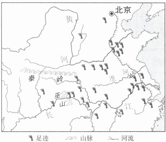 李白不仅是一位浪漫主义诗人,也是一个“旅行者”。在旅行过程中,他写下了许多美丽的诗篇。读李白行走足迹分布图,完成 7~8 题。