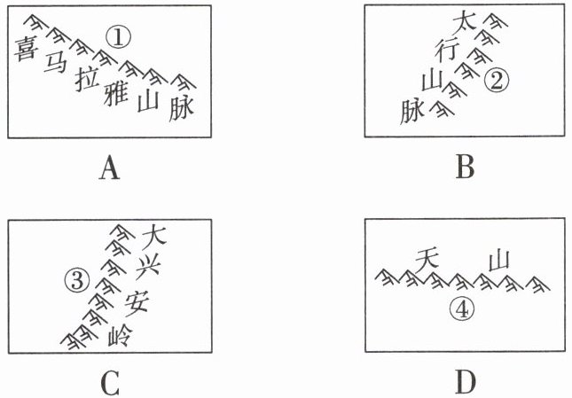 古诗词中也不乏包含山脉名称的诗句。读我国主要山脉示意图,完成 3~4 题。