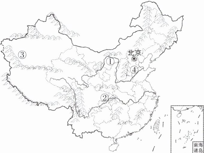 5. 下图中的序号,正确表示内蒙古高原位置的是(