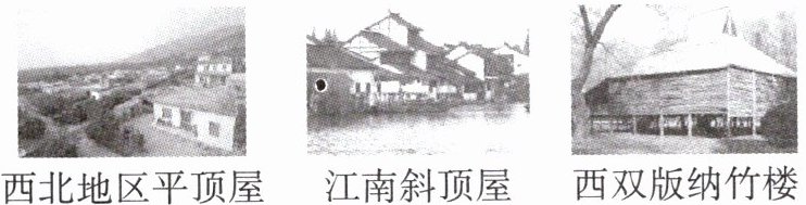 (5)结合下列图片所示传统民居,分析年降水量的多少对我国传统民居房屋结构的影响。