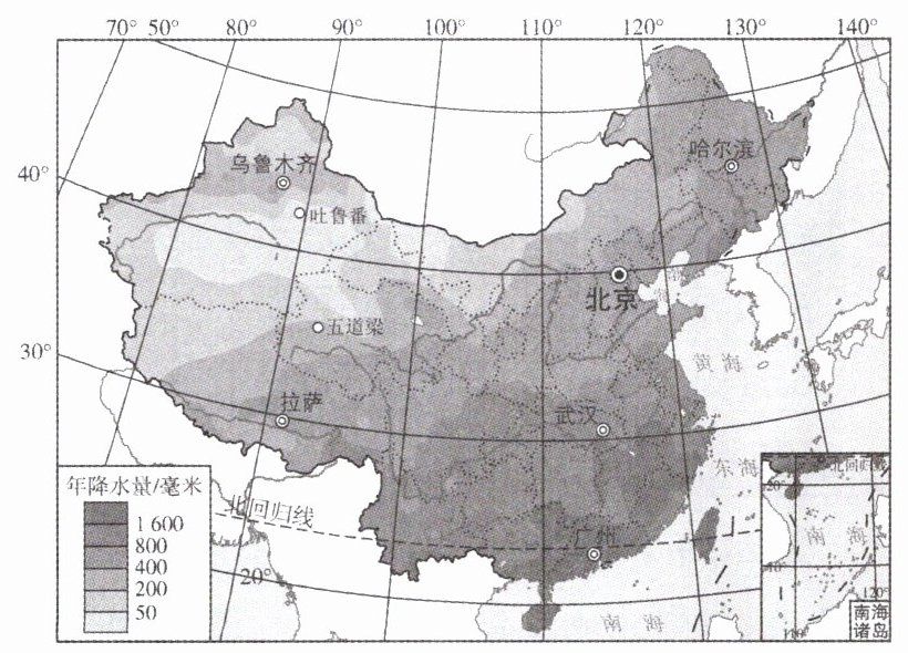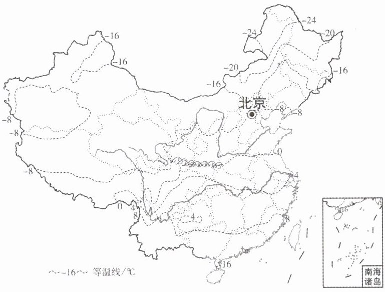 (3) 我国冬季北方气温低,南方气温较高;海南省位于南方,1月气温温暖,适合避寒。