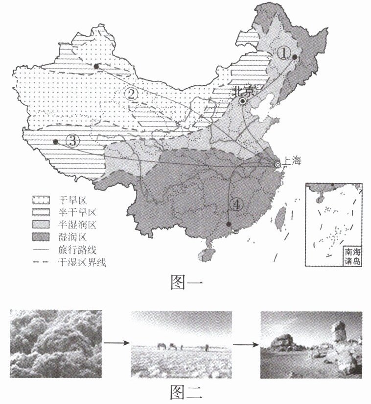 家住上海的小明为了在暑假期间游览祖国的大好河山,精心设计了四条游览线路。读图,完成3~4题。