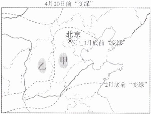 6. 导致甲、乙两地树木“变绿”时间存在差异的主要因素是(