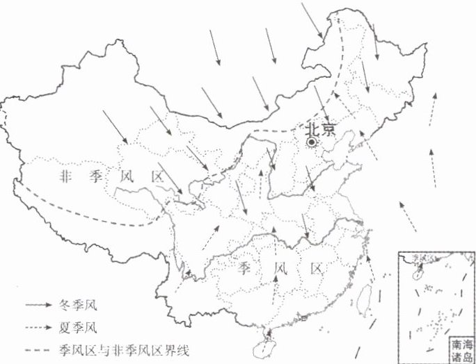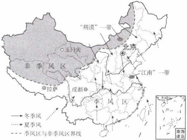古诗词中也不乏描述地理现象、揭示地理规律的诗句。读我国季风区和非季风区示意图,完成7~8题。