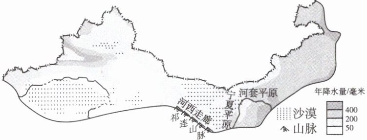 4. 受降水分布的影响,西北地区的植被类型从西到东依次是(