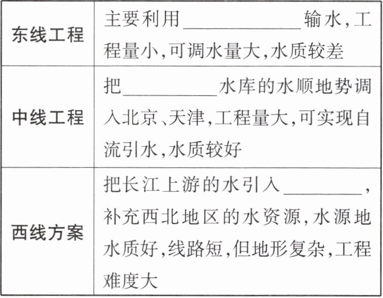 水库的水顺地势调入北京、天津,工程量大,可实现自流引水,水质较好||西线方案|把长江上游的水引入