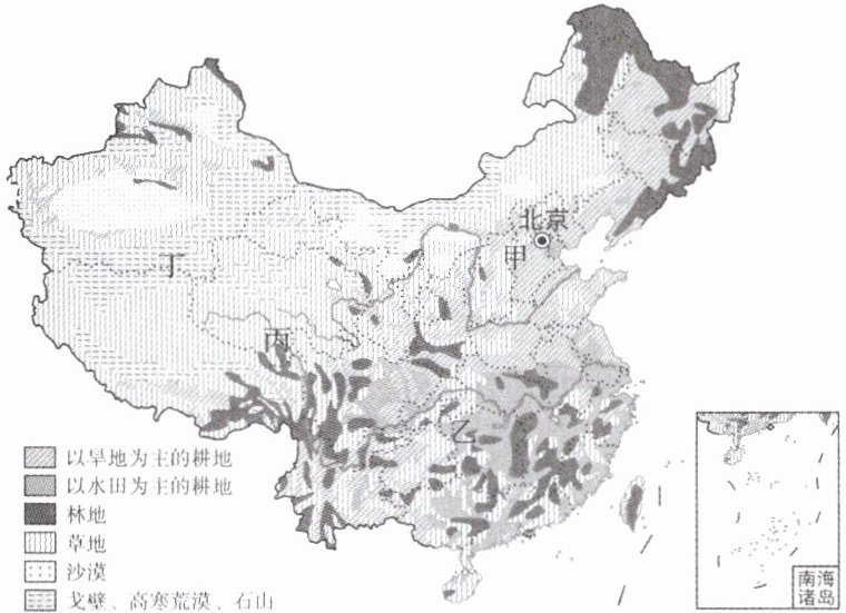 2024年6月25日是我国第34个全国土地日。读我国主要土地利用类型分布图,回答问题。