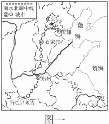 南水北调中线工程水源稳定,水质好,建成后可以自流输水。读南水北调中线工程示意图(图一)、华北地区资料图(图二),回答问题。