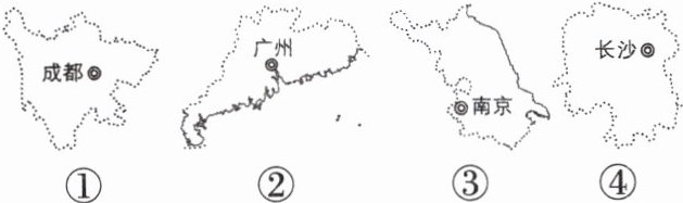 昆明市五华区某中学地理老师给同学们设计了“我国四大名绣(苏绣、粤绣、湘绣、蜀绣)”研学项目。刺绣又称“针绣”,是我国优秀的民族传统工艺之一。读图,完成8~9题。