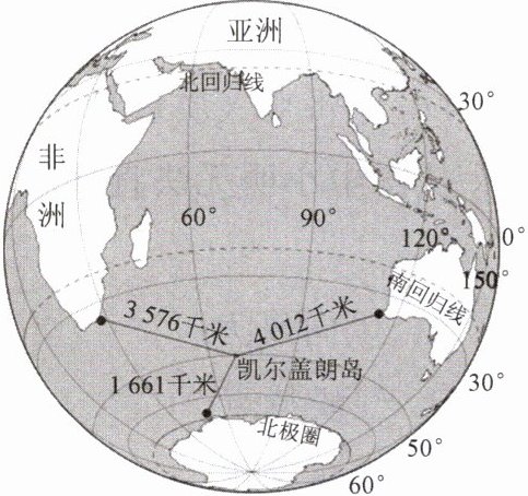 半球。(2)距离凯尔盖朗岛最近的大洲是