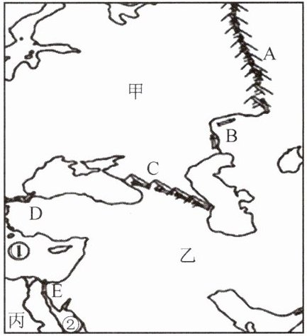 27. 读大洲分界线图,回答下列问题。(8 分)
