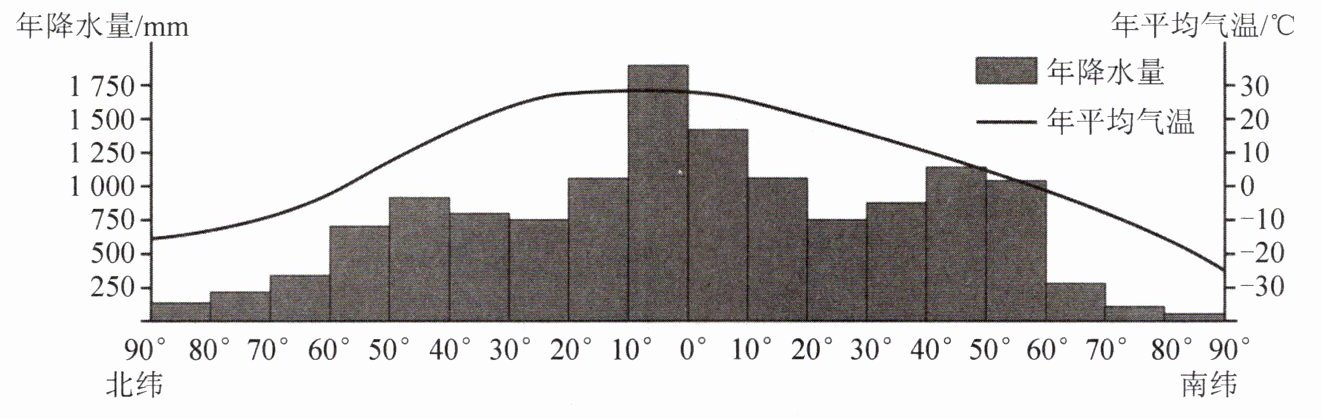 )①赤道地区降水丰沛 ②全球降水量由赤道向两极逐渐减少