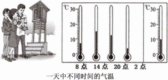 (2)在北京时间2时、8时、14时、20时四次观测记录。(夜晚观测请在教师或家长指导下进行)