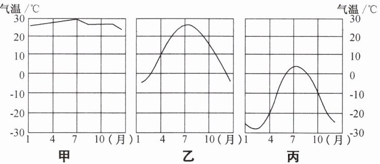 图。(4)(双选)下列关于甲、乙、丙三地的说法正确的是 (