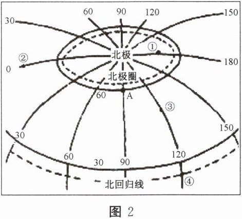 。3. 当①地为白天时,②地是
