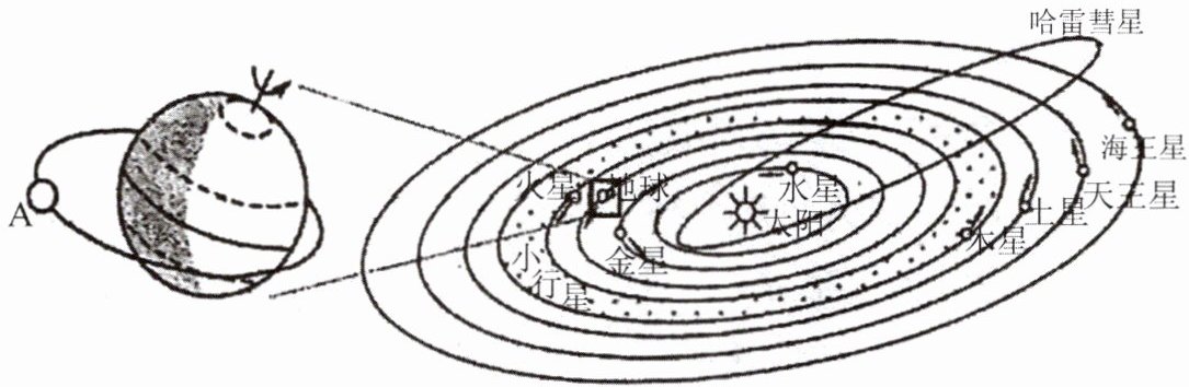 地球是太阳系八大行星之一。地球与月球组成一个天体系统——地月系统。地球是目前宇宙中已知唯一存在生命的天体,是适合人类生存的唯一家园。下图为太阳系模式图。读图,完成1—3小题。