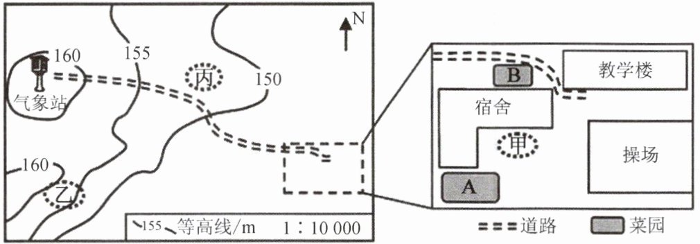 (1)甲 丙 丙地块离宿舍楼更远,更卫生
