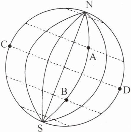 2. 若C、D两点之间的图上距离为20厘米,则该地球仪的比例尺大致是 (