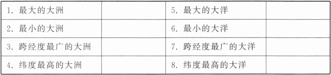 3.跨经度最广的大洲 南极洲 7.跨经度最广的大洋 北冰洋