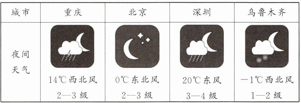 孔明灯俗称许愿灯,放孔明灯时需要通过燃烧蜡等可燃物来加热灯内空气,使之上升飘向空中,放飞的天气条件是天气晴朗且风力较小。下表示意2023年11月某日天气预报资料。据此完成1—2题。