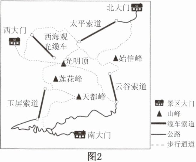 暑假期间,宁宁一家前往黄山景区游览。读黄山景区导览简图(图2),完成6—8题。