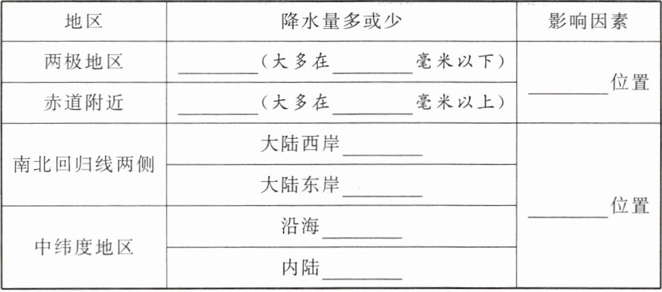过程2:世界年降水量分布规律及影响因素(P60图3.24及P61活动题)