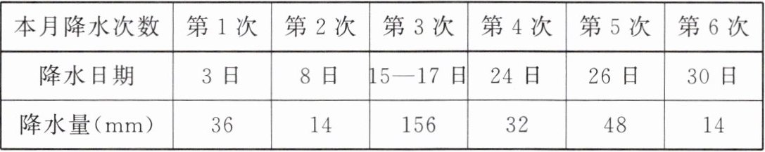 该地理兴趣小组的同学们观测了当地某月全部的降水过程,并做了详细记录(如下表)。