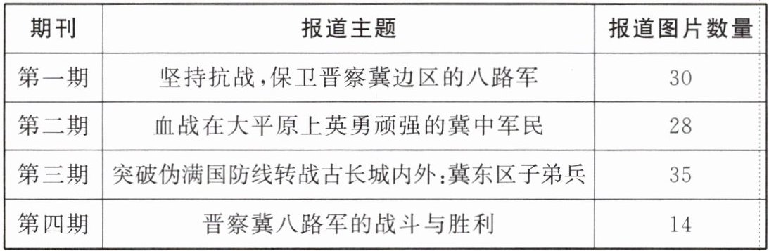 9. 下表是《晋察冀画报》关于抗战的摄影报道统计表(部分),表中的报道最能佐证 (