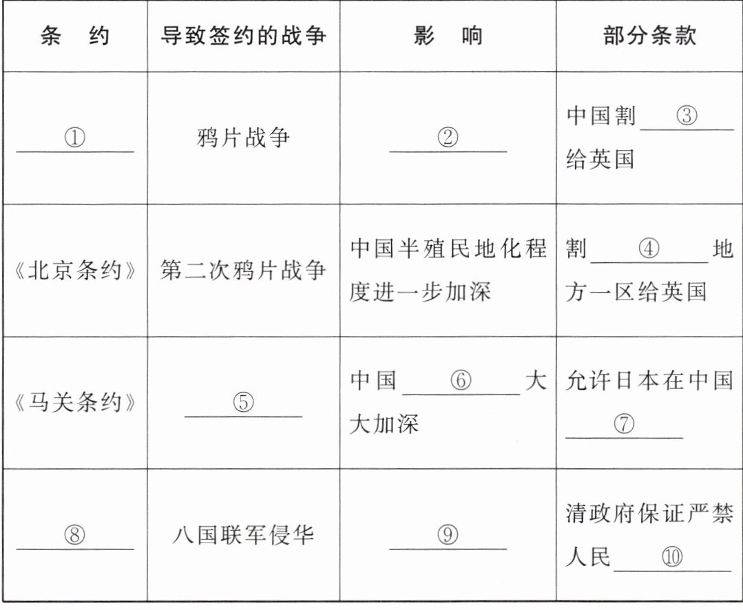 1. 近代史上《南京条约》《马关条约》《辛丑条约》的先后签订,使中国一步一步走向半殖民地半封建社会的深渊。上述三个不平等条约的共同内容是 (