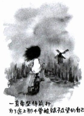 12. 观察右图漫画,漫画的配文是:一直要坚持前行,为了追上那个曾被赋予众望的自己。对此,下列理解错误的是(