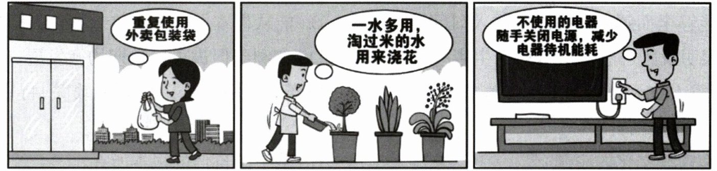 (3)践行绿色低碳生活方式,我们还可以有哪些微行动?(不能与漫画中的内容重复)(6 分)