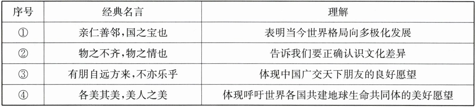 12. 习近平主席在外交场合经常引经据典表达思想。下面是小赣同学整理的学习笔记,其中对习近平主席引用的经典名言理解恰当的是(