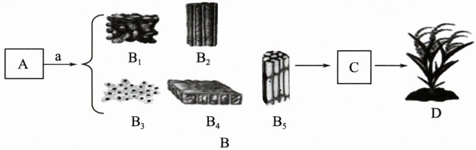 (1) A细胞经过a过程形成B₁~B₅几种不同形态的细胞群,则a过程叫作