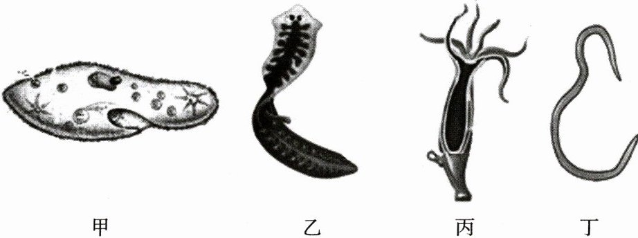 6. 动物有与其生活环境或生活方式相适应的结构,如图甲为草履虫,乙为涡虫,丙为水螅,丁为蛔虫,下列描述错误的是(