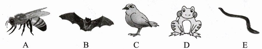 。(填字母序号)(2)比较A和E两种动物,从外部形态看都分“节”,但E动物属于