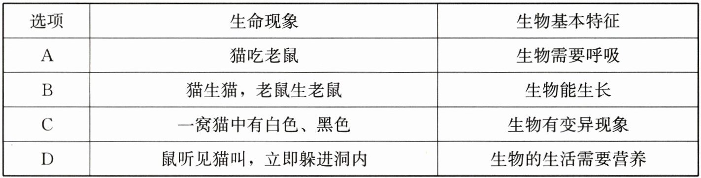 22. 下表所示猫和老鼠的生命现象,与相应的生物基本特征叙述正确的是(