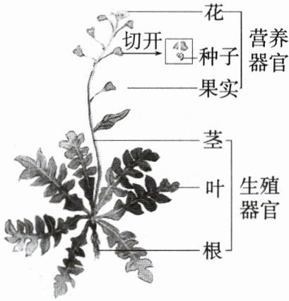 16. 如图是小明同学观察荠菜植株时做的标注,下列叙述错误的是(