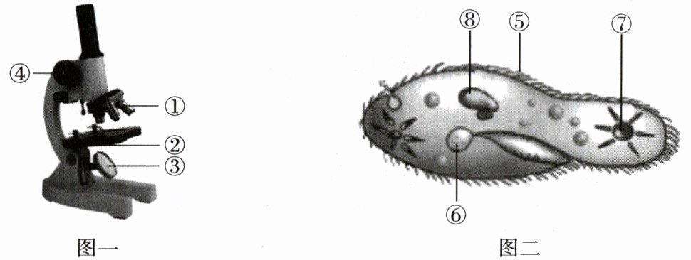 (3)在观察草履虫临时装片时,发现视野太亮,应调节图一中的[