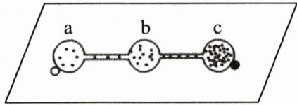 12. 小宁同学为探究草履虫能否对外界刺激作出反应,在载玻片的a、b、c三处各滴两滴草履虫培养液,将其连通,a处边缘放一粒食盐,c处边缘滴一滴肉汁,一段时间后,实验结果如图。下列相关叙述错误的是(
