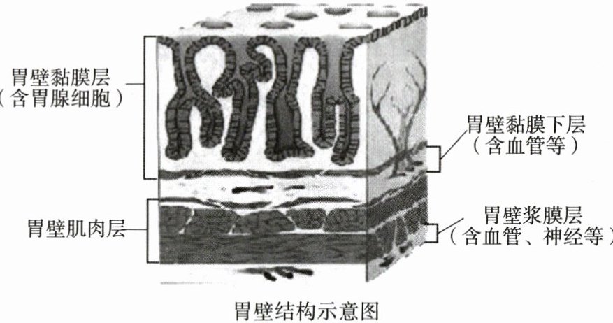 9. 胃壁结构模型如下图所示,下列有关描述错误的是(