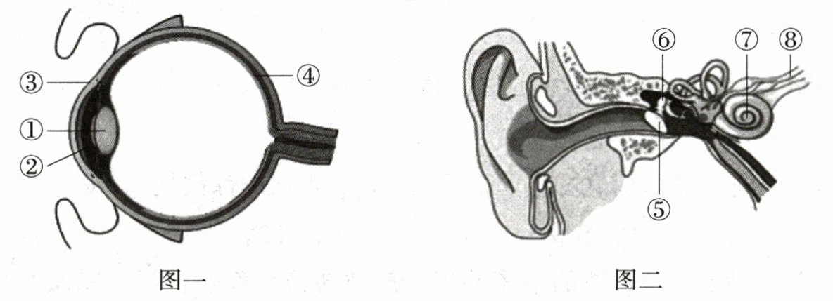 透镜加以矫正,因此,看电视一定要有节制。(2)我们能听到电视声音,是因为电视发出的声波引起图二中[