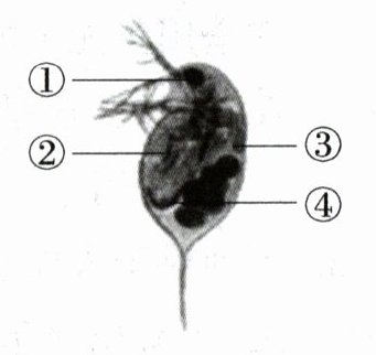 16. 实验“酒精对水蚤心率的影响”需要测定水蚤的心率。图中水蚤心脏的编号是(