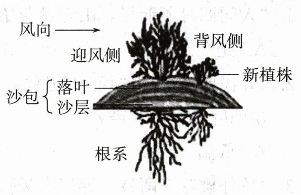 (2)随着柽柳的生长,落叶和沙层逐渐堆叠,形成如图所示的隆起