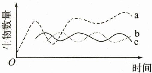 6. 如图,曲线a、b、c与某草原生态系统中可组成一条食物链的三种生物相对应,下列分析错误的是(