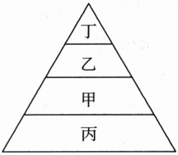 13. 某生态系统中四种生物所占的数量关系如图所示,假设这四种生物构成一条食物链。在一段时间内,若乙的数量增加,则会引起(