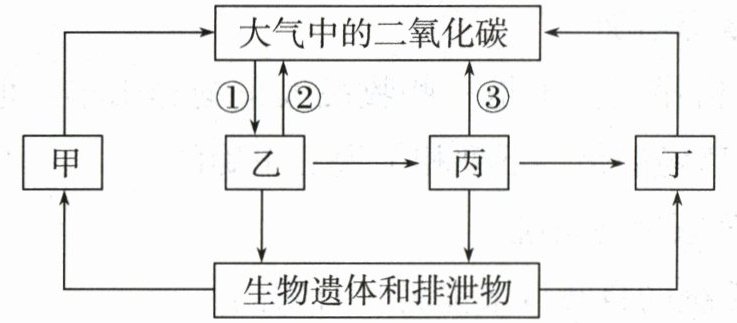 7. 如图是某生态系统的碳循环示意图(甲~丁代表生物成分,箭头代表碳循环),下列说法正确的是(