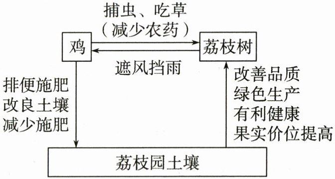 4. 南方地区普遍采用在荔枝园内养鸡的生产模式,如图为该模式的结构与功能示意图,下列说法不正确的是(