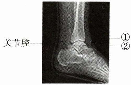 7. 小明在打篮球过程中突然觉得左脚脚踝处剧烈疼痛,经检查得到踝关节射线透视图像,①②表示踝关节内的结构。下列说法错误的是(
