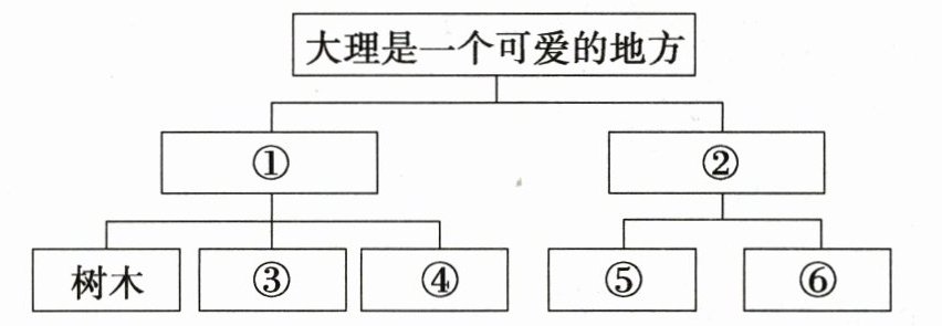 ”画出能概括第③自然段主要内容的关键句。(2分)17. 短文介绍了大理是一个可爱的地方。根据短文内容完成下面的思维导图。(6分)