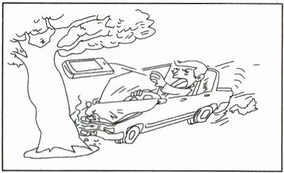 现在,开车看手机的现象普遍存在。你看,图中的叔叔开车看手机,结果车撞到了树上。看到这样的情景,你一定有很多想说的吧,把你的想法写出来和大家一起分享吧。别忘了给作文拟一个恰当的题目哟!字数不少于300。(请同学们自备作文纸)